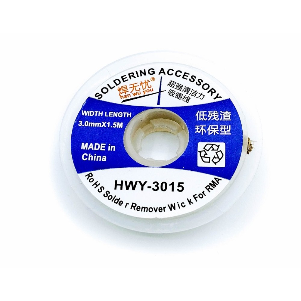 Данная лента предназначена для быстрого и удобного удаления припоя с места пайки. Она намнго безопаснее для платы и компактней вакуумного оловоотсоса.